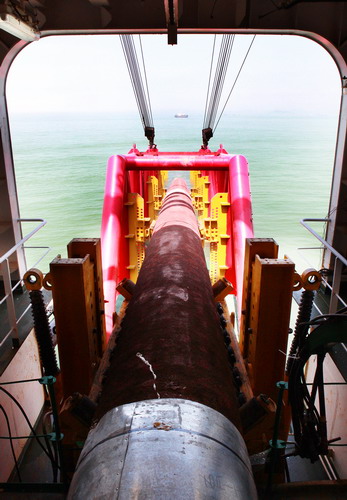香港支線深港海底管道分兩段,分別為求雨嶺—大鏟島段和大鏟島—香港龍鼓灘段。管道全長約30公里,設(shè)計(jì)年輸氣能力為60億立方米。管道要穿越5條航道和一個(gè)國家一級(jí)動(dòng)物保護(hù)區(qū),施工難度大?!〗刂聊壳?,香港支線管道已敷設(shè)1.2公里,挖泥182萬立方米。